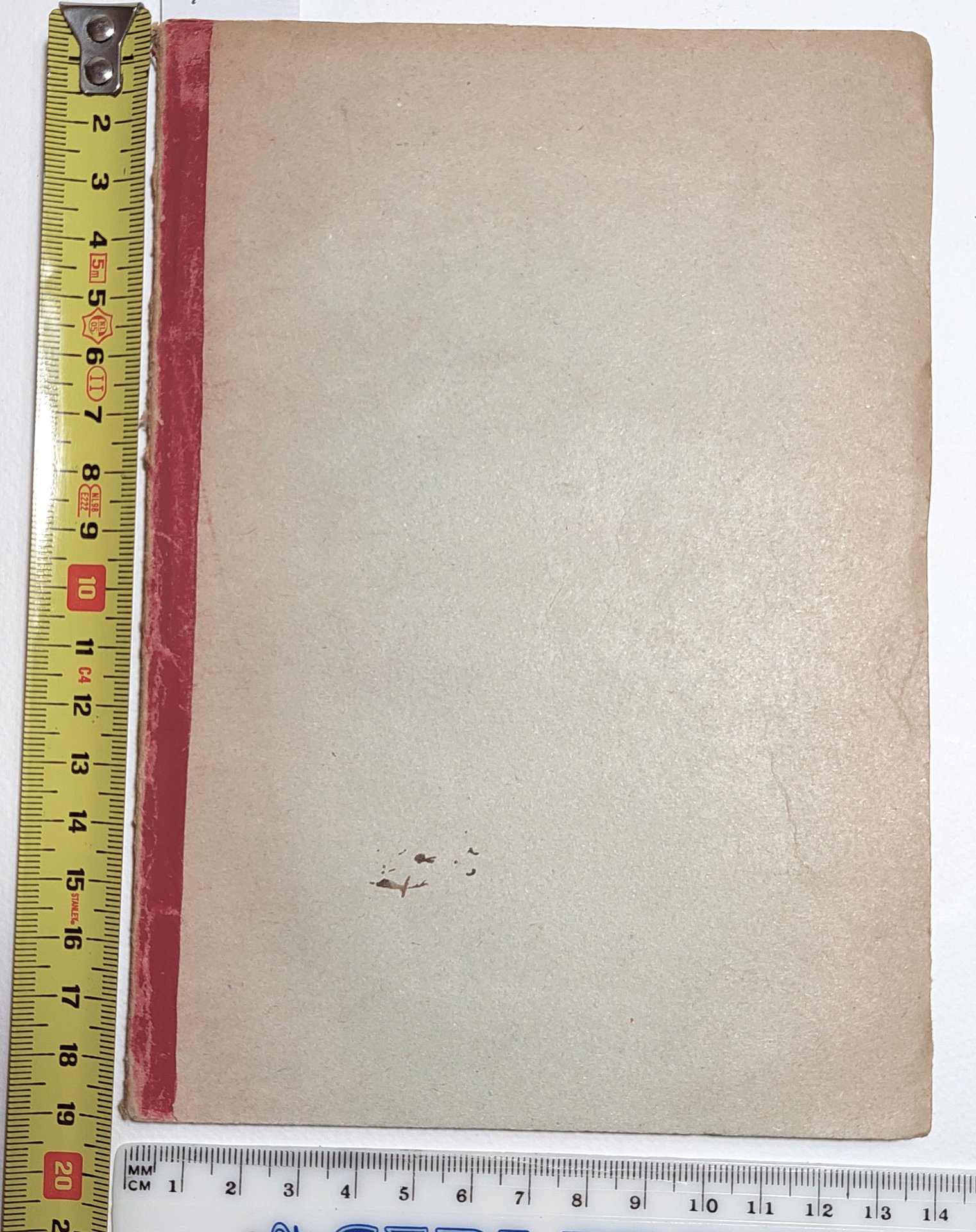 legatura morbida editoriale muta, dorso di colore rosso con titolo scritto a penna bianca, abrasioni ai margini del dorso e tra dorso e piatti, alcune pieghe agli angoli dei piatti, lieve brunitura, tagli bruniti irregolari quelli superiori, all'interno conservata la legatura editoriale originale con pieghe e macchie, vedere immagini, frontespizio con numero di catalogazione a matita al margine inferiore, alcune pieghe alle pagine interne e alone al margine inferiore, numero pagine 64 dimensioni cm 19,3 * 13,8