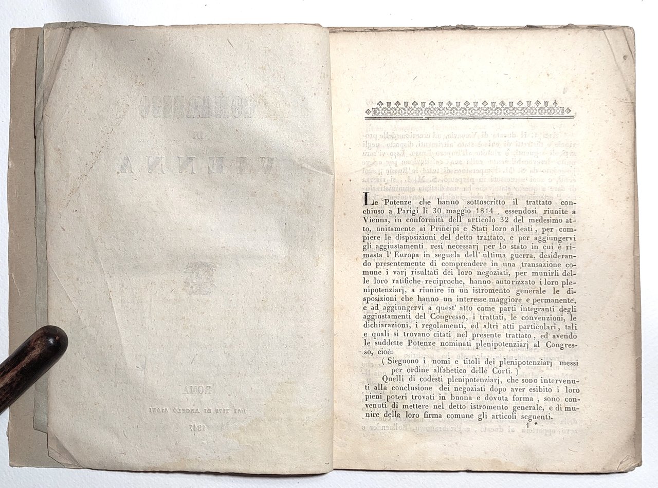 Congresso di Vienna Roma dai tipi di Angelo Ajani 1847