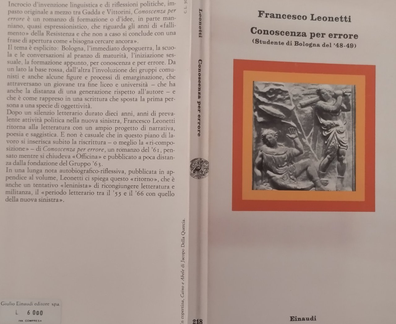 CONOSCENZA PER ERRORE di Francesco Leonetti 1978 Einaudi Libro studente Bologna