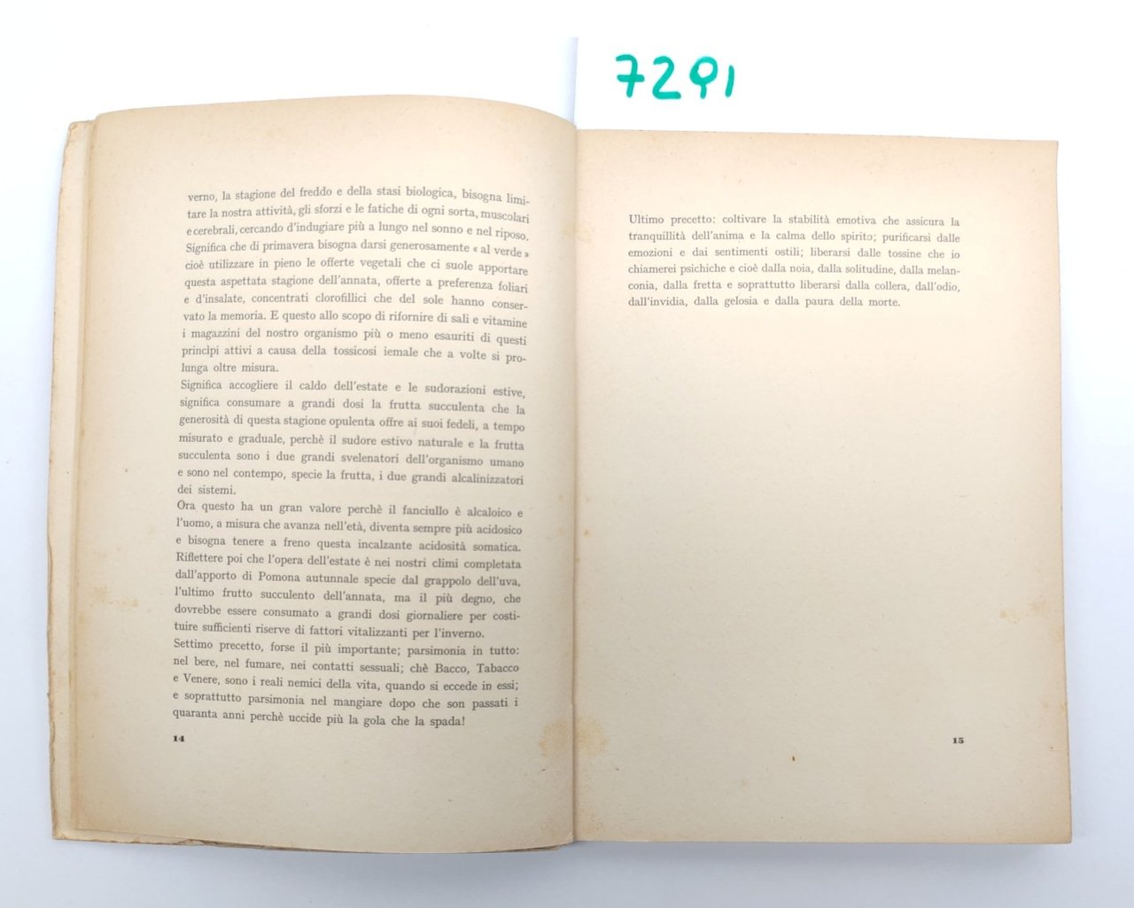 Legatura morbida editoriale con fioriture e aloni diffusi ai piatti e al dorso, dorso leggermente brunito, segni del tempo, tagli bruniti con alcune fioriture, fioriture alle pagine interne in particolar modo alle prime ed ultime pagine, pagine interne leggermente ingiallite, numero pagine 123 dimensioni cm 21,5 * 15,3