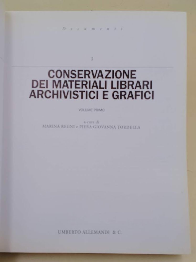 CONSERVAZIONE DEI MATERIALI LIBRARI ARCHIVISTICI E GRAFICI- VOL I- (1996)