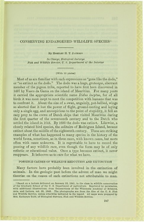 CONSERVING ENDANGERED WILDLIFE SPECIES.