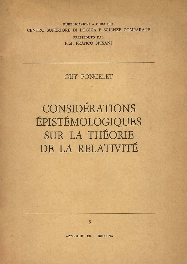 Bologna, Azzoguidi, 1972, in-8, br. edit., pp. 69, (3). Con nota bibliografica. Pubblicazioni a cura del Centro Superiore di Logica e Scienze Comparate presieduto dal prof. F. Spisani, n. 5.