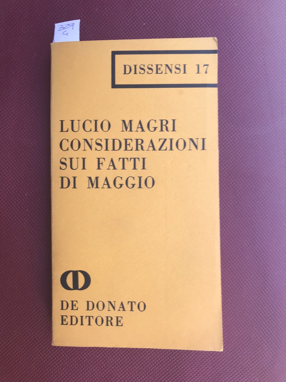 In-16°, pp.291, brossura editoriale. Collana ' Dissensi 17', firma di appartenenza alla prima carta di guardia