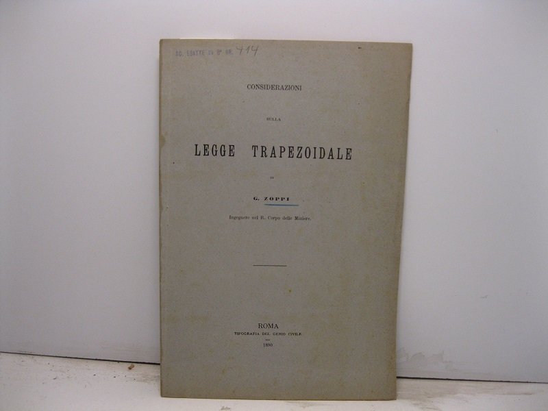 Considerazioni sulla legge trapezoidale di G. Zoppi ingegnere nel R. Corpo delle Miniere