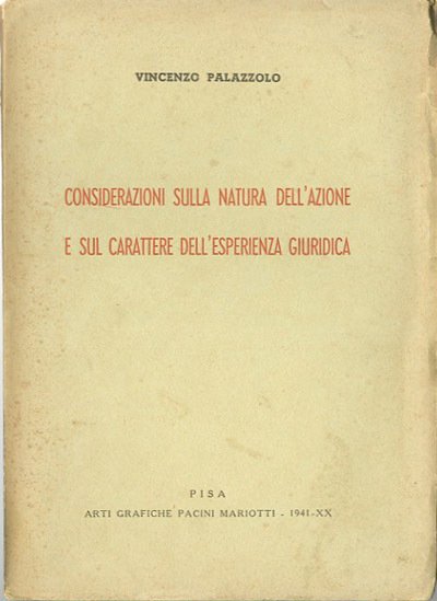 Considerazioni sulla natura dell'azione e sul carattere dell'esperienza giuridica.