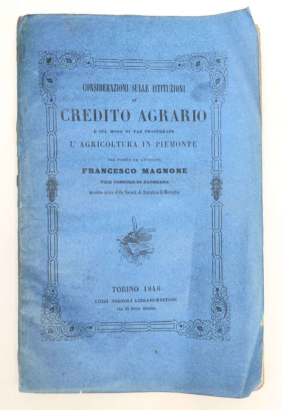 Considerazioni sulle istituzioni di Credito Agrario e sul modo di far prosperare l'agricoltura in Piemonte.