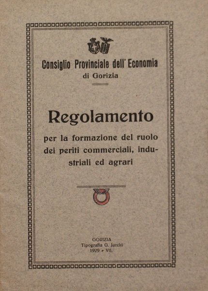 Consiglio provinciale dell'Economia di Gorizia Regolamento per la formazione del ruolo dei periti commerciali,industriali ed agrari.