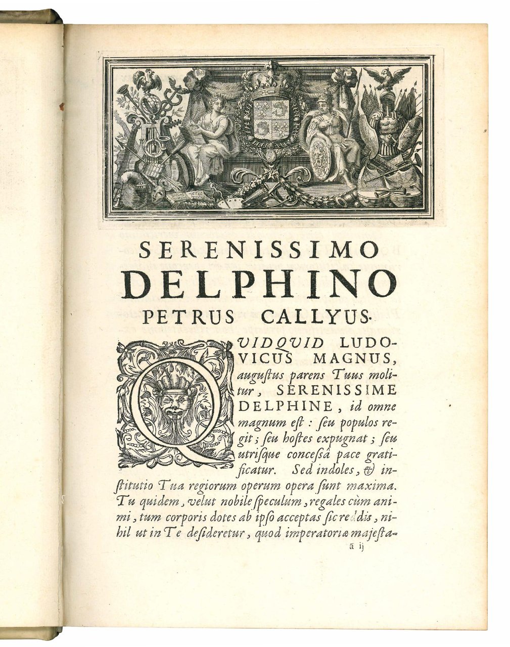 Ottimo esemplare della seconda impressione dell'edizione “ad usum Delphini” del De consolatione philosophiae di Severino Boezio, apparsa nel 1680 presso Roulland, curata da Pierre Callyus, e ritenuta la migliore apparsa fino ad allora. L'espressione “ad usum Delphini” nacque nella Francia dell'Ancien Régime e veniva riportata sui frontespizi dei testi classici greci e latini destinati all'istruzione dell'erede al trono di Francia Luigi (il Gran Delfino), figlio del re Luigi XIV e di Maria Teresa d'Asburgo. In questi testi venivano censurati i passi considerati scabrosi o comunque non appropriati per la giovane età del Delfino. La collezione comprende 64 volumi stampati tra il 1670 e il 1698 per ordine del precettore del Gran Delfino, Charles de Sainte-Maure, duca di Montausier, e sotto la supervisione di Jacques Bénigne Bossuet e di Pierre-Daniel Huet. Questa edizione è corredata da un vastissimo apparato di note erudite e arricchita da un minuzioso lessico al termine del volume.