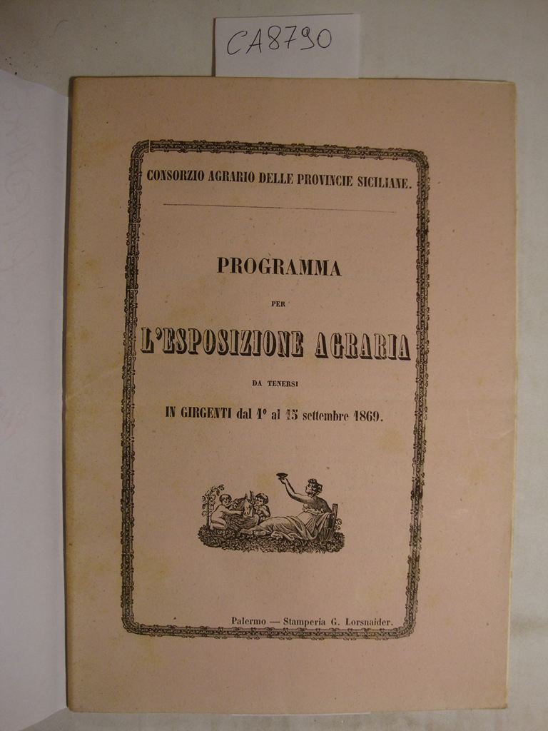 Consorzio Agrario delle Provincie Siciliane - Programma per l'Esposizione Agraria da tenersi in Girgenti dal 1° al 15 Settembre 1869
