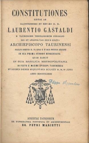 Constitutiones ediate ab Ill. et Rev. D.D. L. Gastaldi e taurinensi Theologorum Collegio Dei et apostolicae sedis
