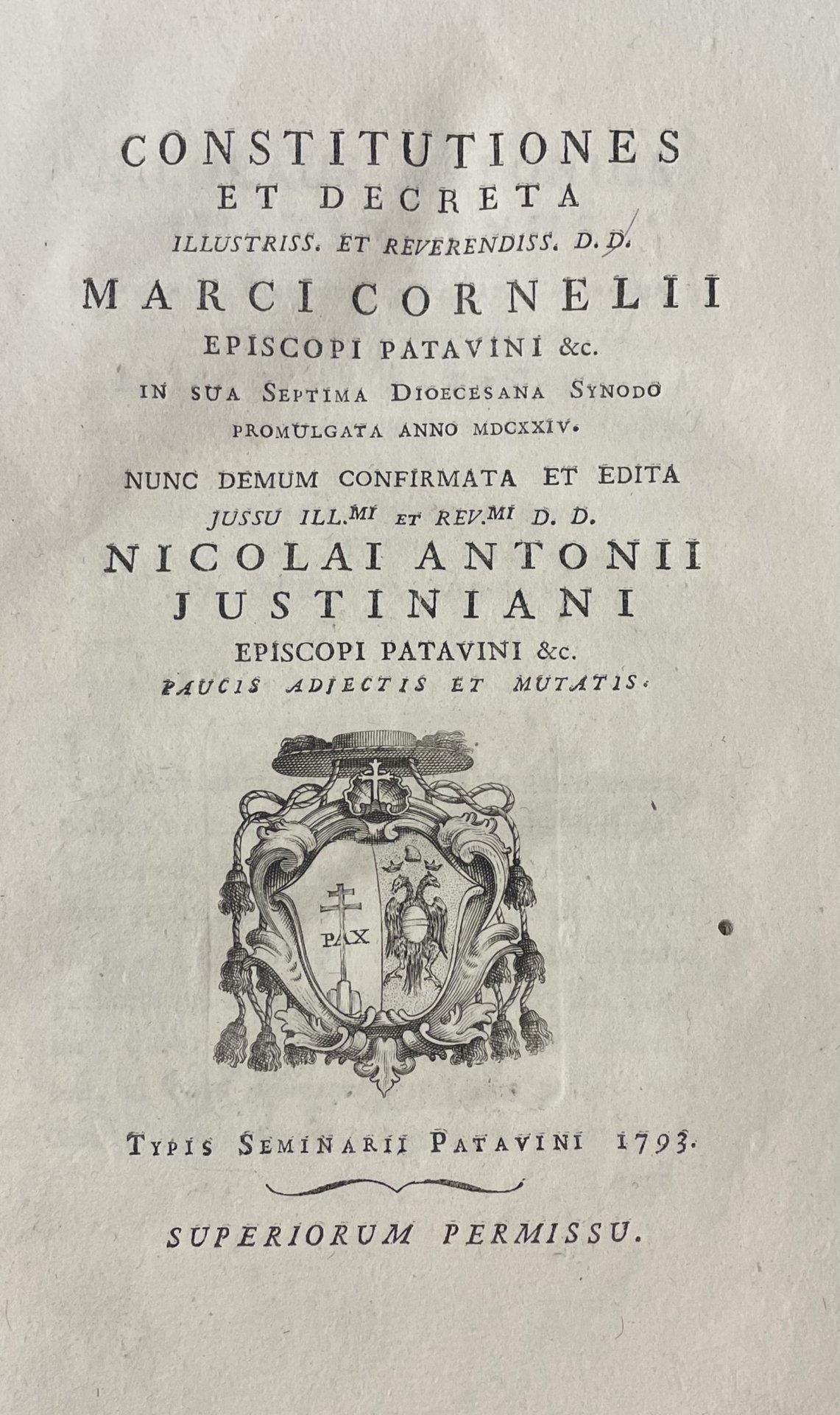 CONSTITUTIONES ET DECRETA ILLUSTRISS. ET REVERENDISS. D. D. MARCI CORNELII EPISCOPI PATAVINI & C.
