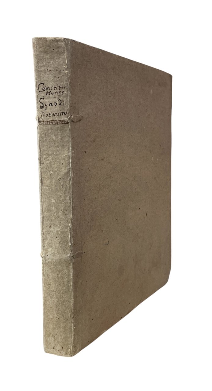 "In sua Septima Dioecesana Synodo promulgata anno MDCXXIV. Nunc demum confirmata et edita jussu Ill.mi et Rev.mi D.D. Nicolai Antonii Justiniani Episcopi Patavini & c. Paucis adiectis et mutatis" Marca tipografica al frontespizio in ottavo leg. cart. alla rustica, titolo manoscritto al dorso pp. 20, 264 Buono (Good) Buon es., lievi segni del tempo.