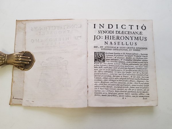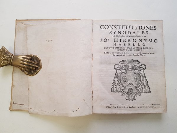 Constitutiones Synodales ab Illustrissimo, & Reverendissimo D. D. Jo. Hieronimo Nasello sanctae Lunensis Sarzanensis Ecclesiae episcopo, et comite .Editae, ac celebratae diebus 24.25.26. Septembris 1702 In Cathedrali Ecclesia Sanctae Mariae.<BR>