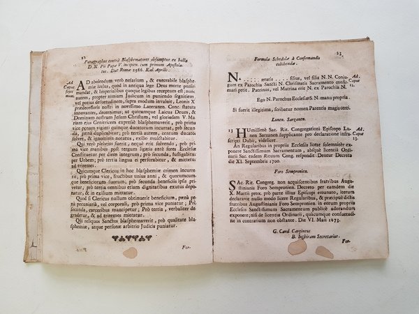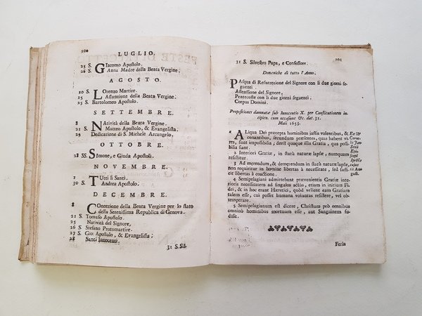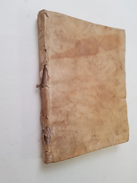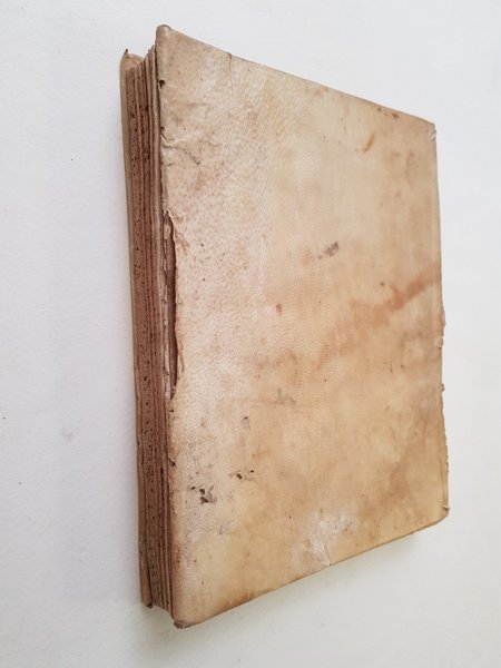 Cm. 20,5 x 16; 141 (1), 1 carta bianca; legatura in tutta pergamena d'epoca con titolo manoscritto al dorso; stemma al frontispizio, capilettera, fregi e finalini tutti xilografati; tagli spruzzati.<BR>CONDIZIONI PIù CHE ACCETTABILI nel complesso: buona conservazione dell'interno ma piatto anteriore staccato; mende al dorso con perdite; danno alla pergamena al margine del piatto posteriore; piccoli forellini di tarlo e un taglietto al margine inferiore delle prime carte; macchiette al margine e brunitura di alcune pagine dell'appendice.