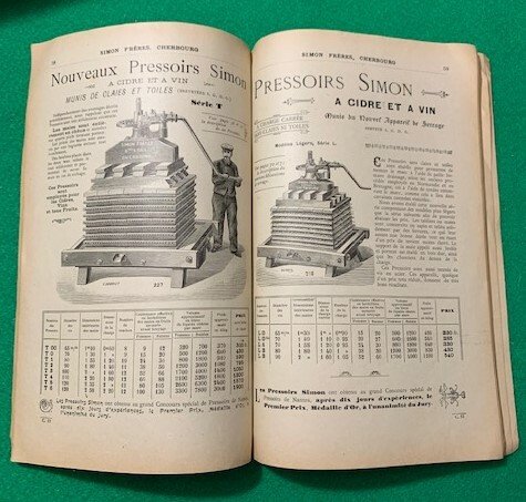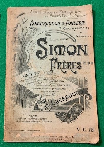Construction & Fonderie de Machines Agricoles et Industrielles Etablissements Simon Freres Cherbourg.Catalogue des Appareils pour la fabrication des Cidres, Poires, Vins, etc.