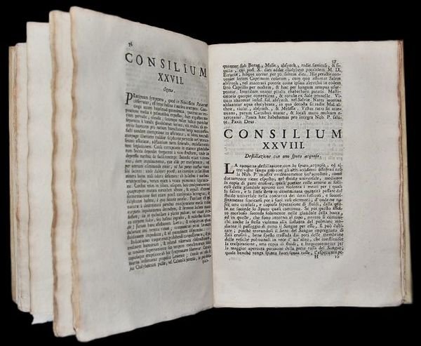 In 4° (23,5×17,3 cm); (10), 179, (3) pp. Legatura dei primissimi del novecento in piena pergamena rigida. Esemplare ancora in barbe e con ampi margini. Iniziali ornate. Conservati i fogli di guardia originali. Antica nota di possesso di Antonio Laghi al frontespizio che definisce questo esemplare esser appartenuto con tutta probabilità al celebre architetto bolognese, Antonio Maria Laghi (1676-1756). Non comune prima edizione di questa importante opera del celebre medico, anatomista e fisiologo originario di Crevalcore (Bologna), Marcello Malpighi. Questopera vide le stampe postuma solo grazie allopera del medico veronese Girolamo Gaspari e allinteressamento di Antonio Vallisnieri. Lopera è particolarmente interessante per lampio spazio dedicato a riflessioni psichiatriche dedicate a varie malattie mentali. Opera non comune, in prima edizione in barbe, dalla provenienza celebre ed in ottime condizioni di conservazione. Cfr. BLAKE 285; Heirs of Hippocrates 575; HIRSCH IV, 110; PIANTANIDA 1949: Pregiata e rara ediz. orig.; WALLER 6195; WELLCOME III, 284.