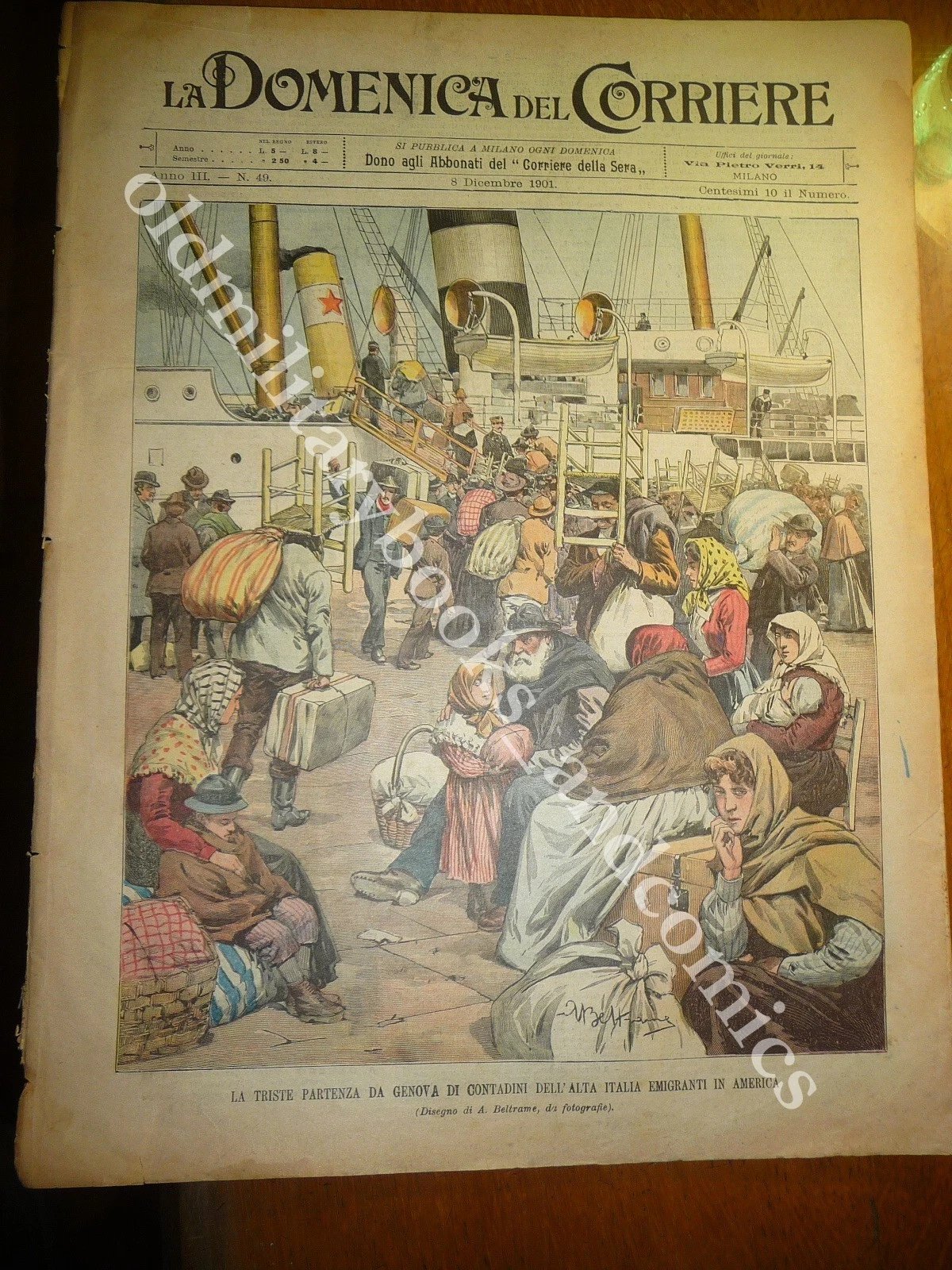 COPERTINA: La triste partenza da Genova di contadini dell'Alta Italia nemigranti in America.