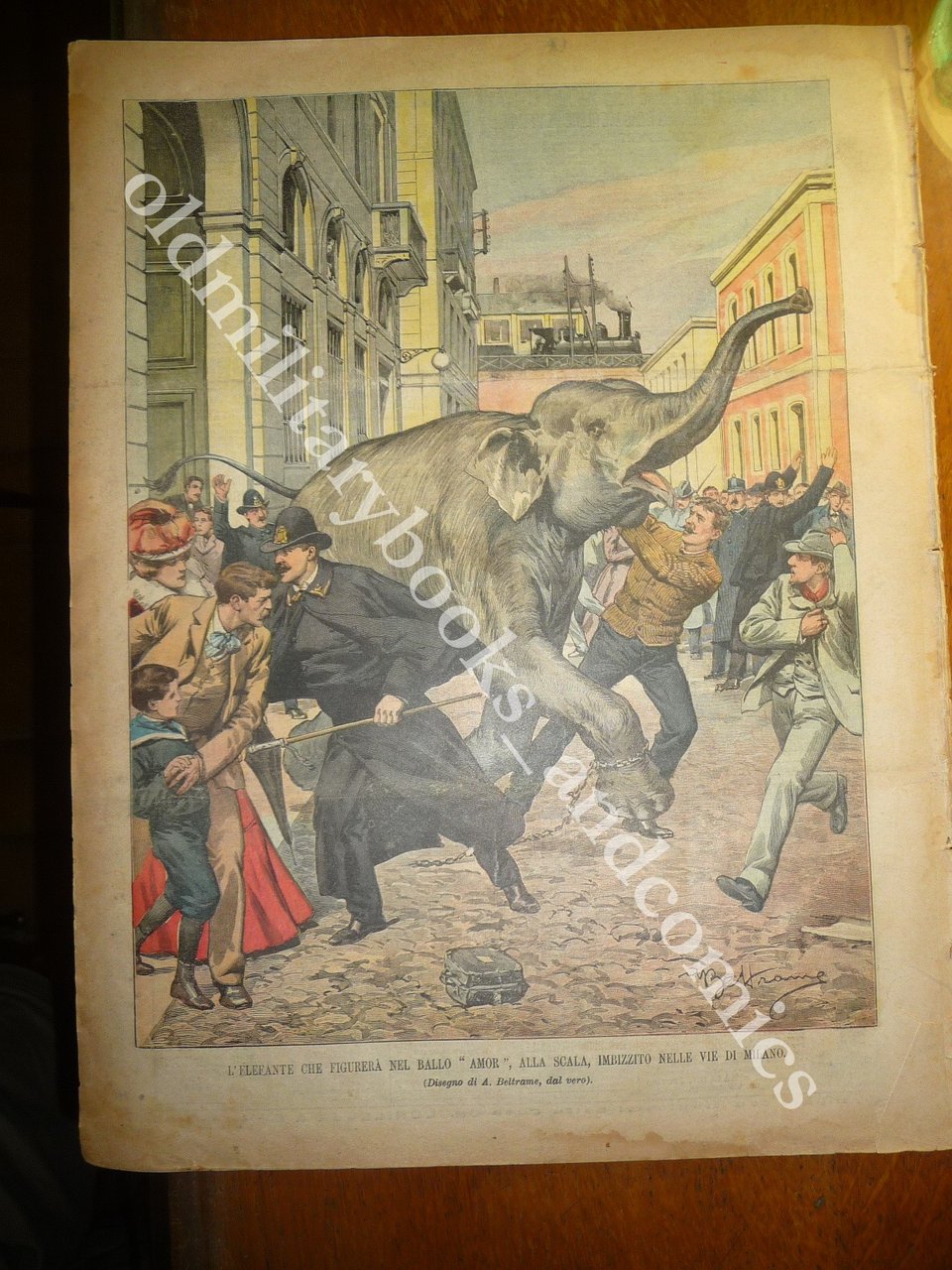 RETRO: L'Elefante che figurerà nel ballo Amor, alla Scala, imbizzito nelle vie di Milano.