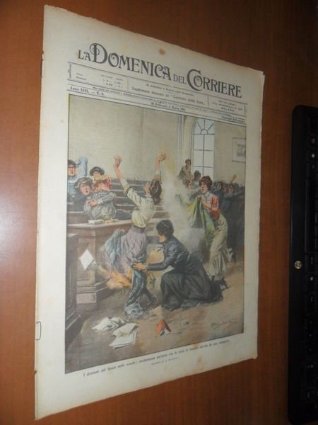DESCRIZIONE: Domenica del Corriere, Milano, Anno XIII n. 9 (26 Febbraio-5 Marzo 1911). COPERTINA: "I drammi del fuoco nelle scuole: studentessa parigina con le vesti in fiamme salvate da una compagna." (dis. A. Beltrame) RETRO: "Tesori nascosti: contadino abruzzese che disseppellisce un'anfora ricolma di antiche monete d'oro." (dis. A. Beltrame) CONDIZIONI: Buone. Senza spille e sovraccoperta, alcune macchiette. PESO / WEIGHT: 100 gr. without package