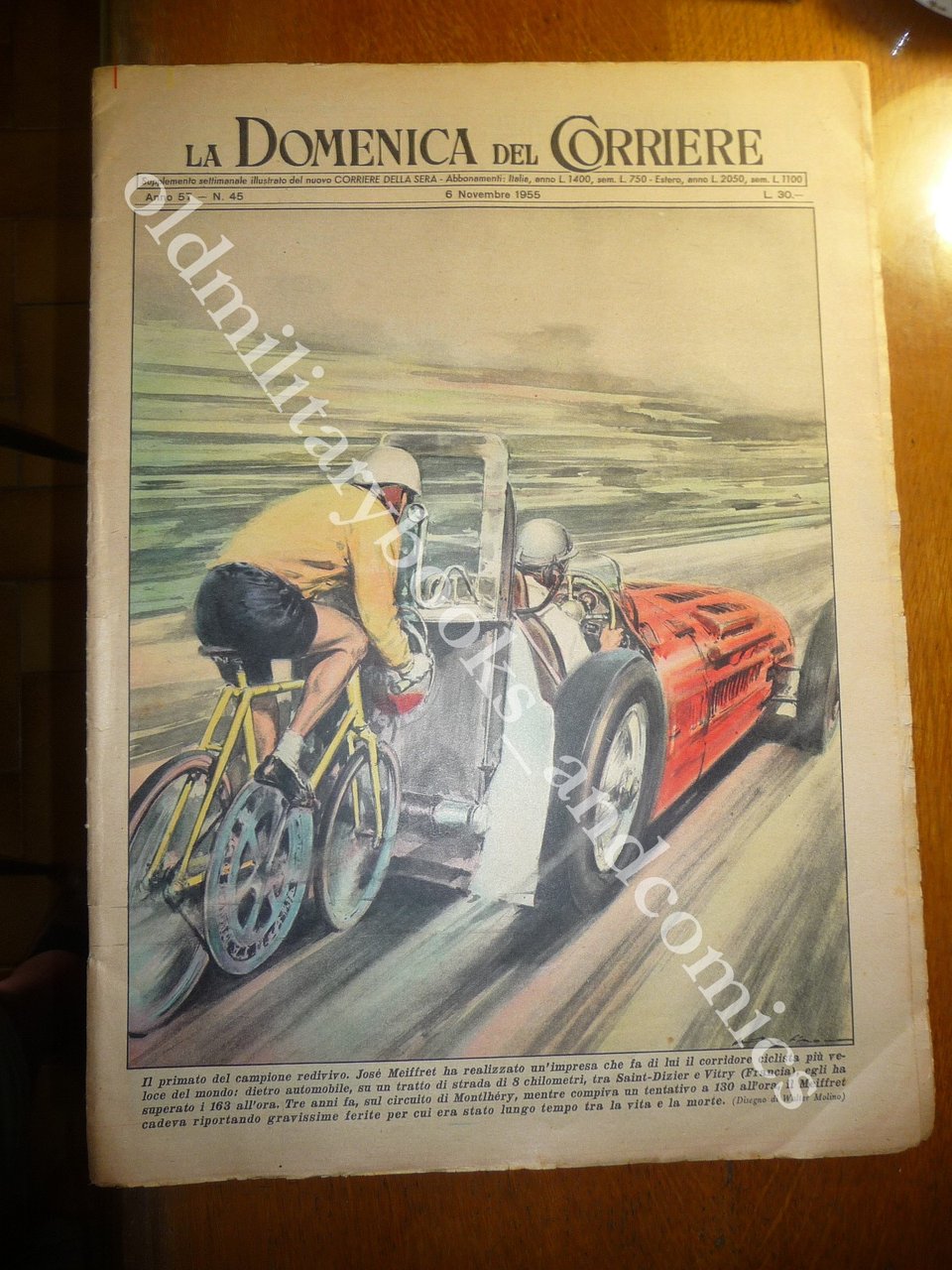 COPERTINA: Il primato del campione redivivo. Jose Meiffret ha realizzato un'impresa che fa di lui il corridore ciclista più veloce del mondo, dietro automobile, su un tratto di strada di 8 chilometri, tra Saint-Dizier e Vitry (Francia), egli ha superato i 163 all'ora. Tre anni fa, sul circuito di Montlhery, mentre compiva un tentativo a 130 all'ora, il Meiffret cadeva riportando gravissime ferite per cui era stato lungo tempo tra la vita e la morte.