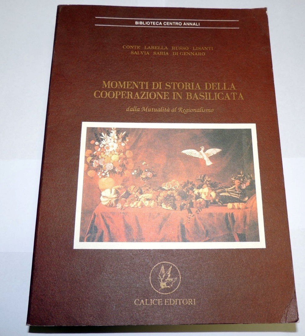Costantino Conte et al., Momenti di storia della cooperazione in Basilicata. Dalla mutualità al regionalismo, Calice editori, s.l. 1990, pp. 325, cm 24, br. ed. In testa al frontespizio: Biblioteca Centro Annali. Autori: Costantino Conte, Angelo Labella, Tommaso Russo, Nicola Lisanti, Rosa Maria Salvia, Franco Sabia, Antonio Di Gennaro. Indice: Nino Calice, Prefazione – Costantino Conte, Le società di mutuo soccorso – Angelo Labella, Cooperazione e organizzazione del potere in età giolittiana – Tommaso Russo, Le banche popolari cooperative: dall’usura al mercato – Nicola Lisanti, La distruzione del movimento cooperativo: il fascismo – Rosa maria Salvia, Il difficile ruolo dell’impresa cooperativa nel secondo dopoguerra – Franco Sabia, Cooperazione e regione. Minime tracce d'uso alla copertina, per il resto ottimo esemplare.