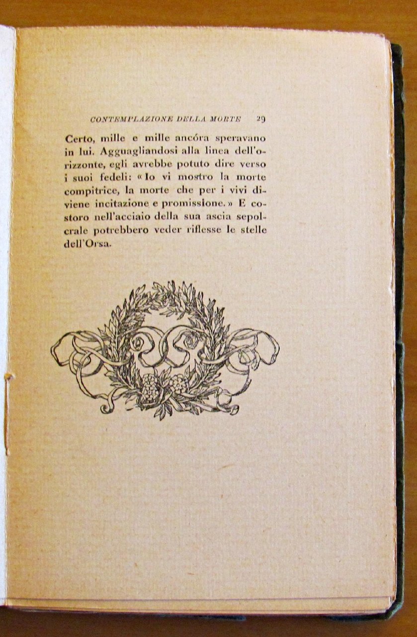 Testatine e finalini in b/n n.t. Fratelli Treves, Milano - 1920. Brossura editoriale. Timbro e firma di appartenenza all'occhietto e macchia alle sole pagine 120-121 (come da foto), rilegatura allentata, ma non scollata da pagina 112 alla fine. 11,5x17; pp. XXIII di messaggio + 136. BUONISSIMO STATO , Molto buono (Very Good)