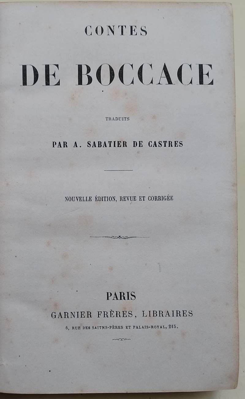 In 8', mz. pelle con nervi e tit. in oro al dorso, piatti marm., pp. 504, tradorro da A.Sabatier De Castres, Nouvelle edition, revue et corrigee; rottura alla costa alla testa del dorso, abrasioni agi ang. e margini dei piatti, alone d'umidita' ai margini da p. 382 fino in fine, tagli bruniti, ordinarie fioriture e segni del tempo. ***Due to bureaucratic reasons, books dated over 70 years old cannot be immediately exported, please contact us before placing the order.***