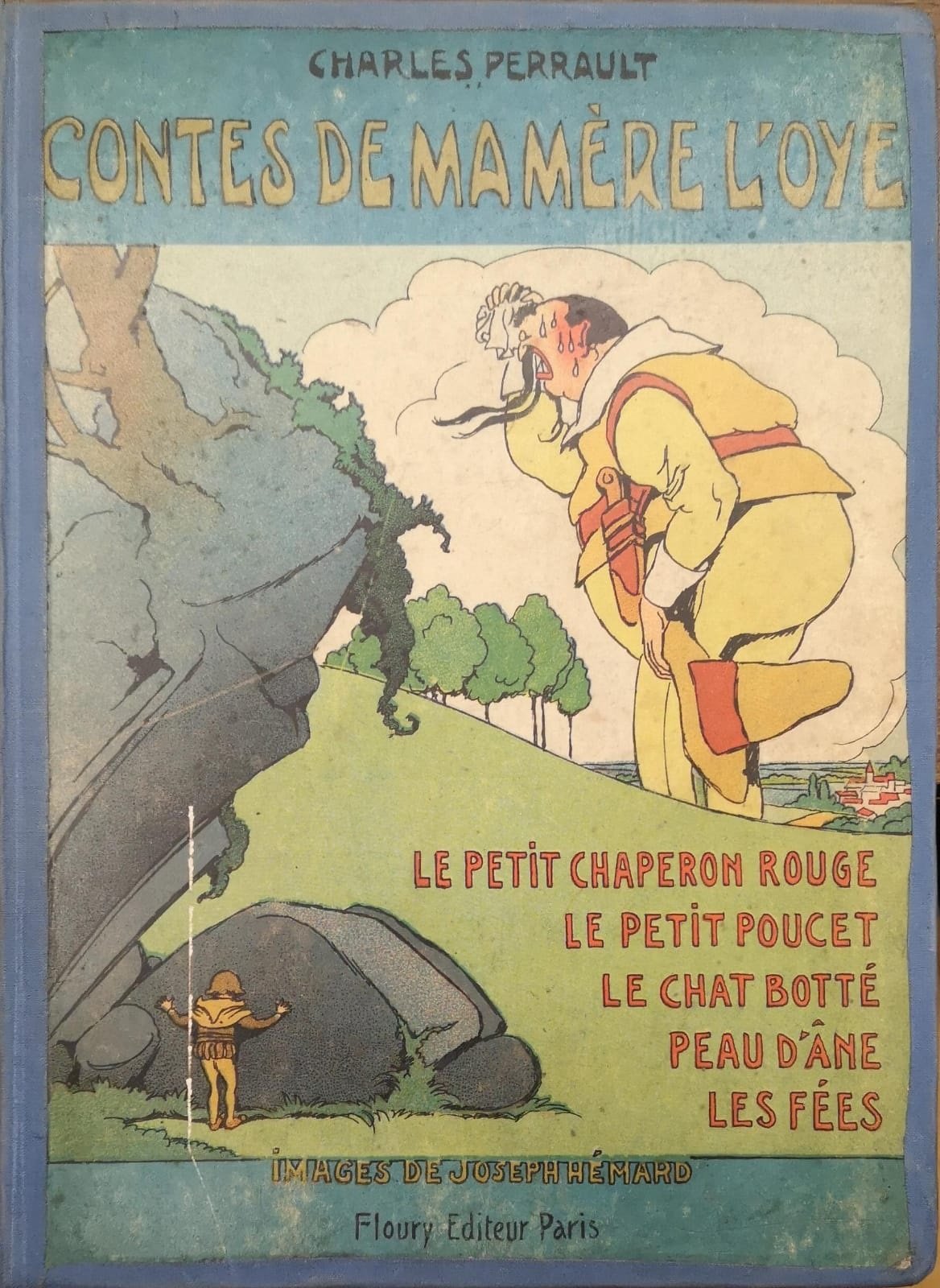 In-4 gr. (mm. 319x232), cartonato editoriale illustrato a colori (dorso e margini rinforzati in tela), pp. (6),81,(5), con bei disegni a colori nel testo, alc. a piena pag., realizzati da Joseph Hémard che illustrano i seguenti racconti: Le petit Chaperon rouge - Le petit Poucet - Le Chat botté - Peau d'Ane - Les Fées. Alc. fioriture intercalate nel testo, altrimenti esemplare ben conservato.