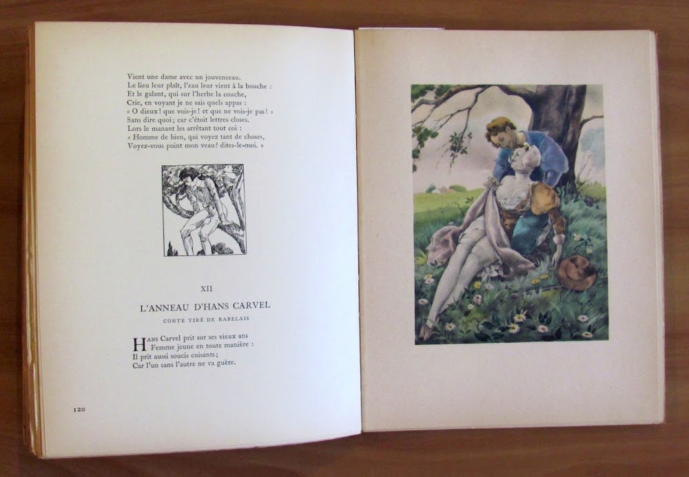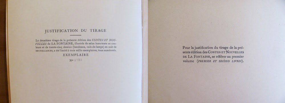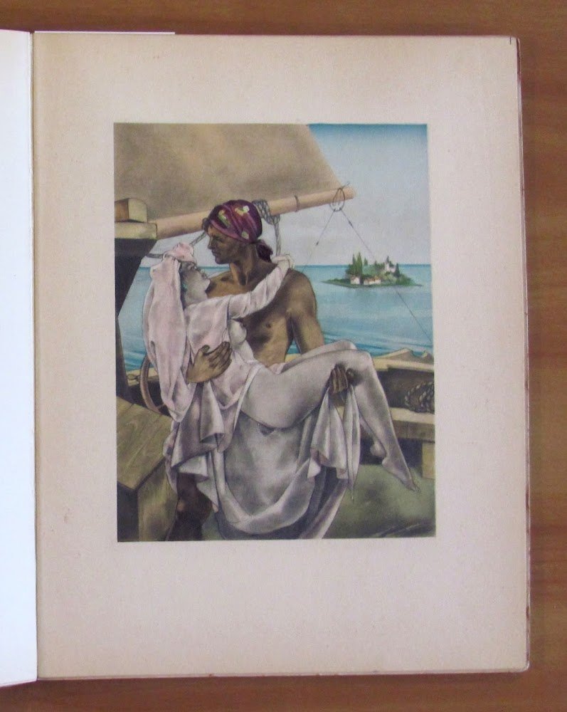 Vol. I - Premier et Deuxième Livre; Vol. II - Troisième, Quatrième et Cinquième Livres. 35 illustrazioni in b/n n.t. al primo volume e 42 al secondo e 16 splendide tavole a colori f.t. in ciascun volume di Umberto Brunelleschi con coloritura originale a pochoir eseguita sotto la direzione dell'artista da E. Charpentier. Librairie d'Amateurs Gibert Jeune - Paris, 1940/1941. Edizione in Tiratura Limitata a 3000 esemplari numerati nostro N° 2933. Brossure editoriali con ali. Quartine interne ancora intonse. Minime imperfezioni del tempo con piccole mancanze alle cuffie dei dorsi, interni tutti freschissimi. 20,5x26,5; pp.164 + 233. Rari e in Ottimo stato. , Molto buono (Very Good)
