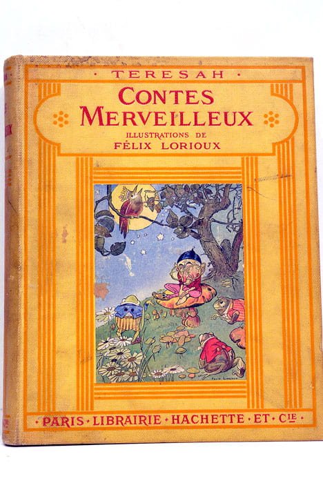 160 pages. 10 planches en couleurs hors-texte. 1 table. (24x19 Cm). Pleine percaline mandarine ornée d'une image couleurs contrecollée. Quelques salissures. Avec 10 illustrations hors-texte en couleurs et de nombreuses illustrations en noir in-texte de Félix Lorioux. Contes traduits de l'italien Mathilde P. Crémieux. 1 feuillet détaché.