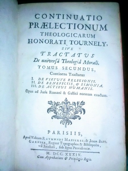 CONTINUATIO PRAELECTIONUM THEOLOGICARUM HONORATI TOURNELY, SIVE TRACTATUS DE UNIVERSA THEOLOGIA MORALI, TOMUS IV, V, VI