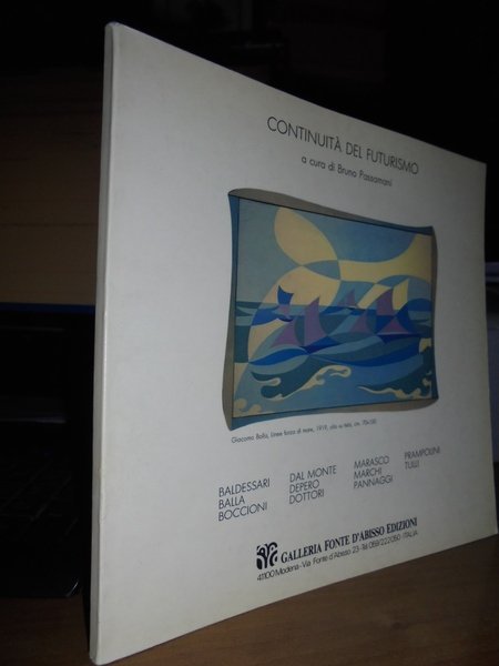 Continuità del Futurismo. A cura di Bruno Passamani. Modena, Galleria Fonte D' Abisso, 1983. In-8° quadrato, cartoncino edit. 68, (1) pp. con numerose illustrazioni a colori e in bianco e nero n.t. Neg. Bol. mob. 20