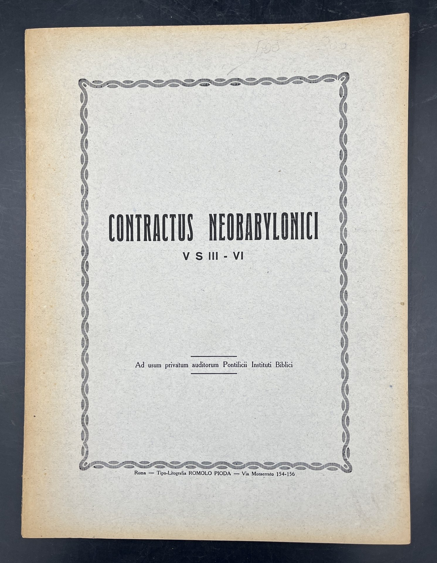 CONTRACTUS NEOBABYLONICI V S III- VI Ad usum privatum auditorum Pontificii Indtituti Biblici.