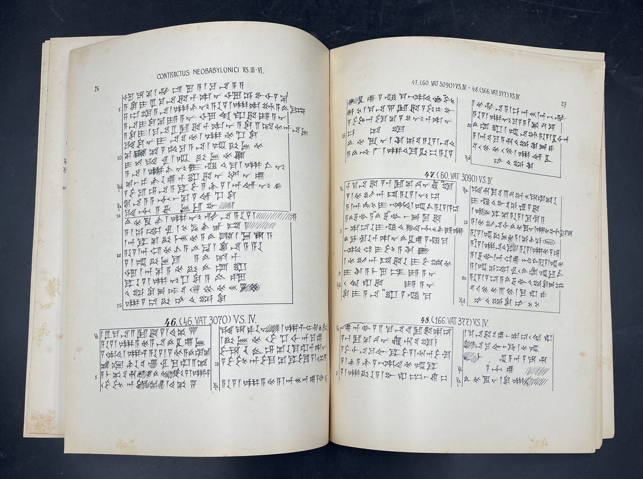 In-4° (cm. 29,7), pp. 40 di RIPRODUZIONI I ISCRIZIONI CUNEIFORMI. Bross, edit. Firma d'appartenenza dello studioso Luciano PEREZ