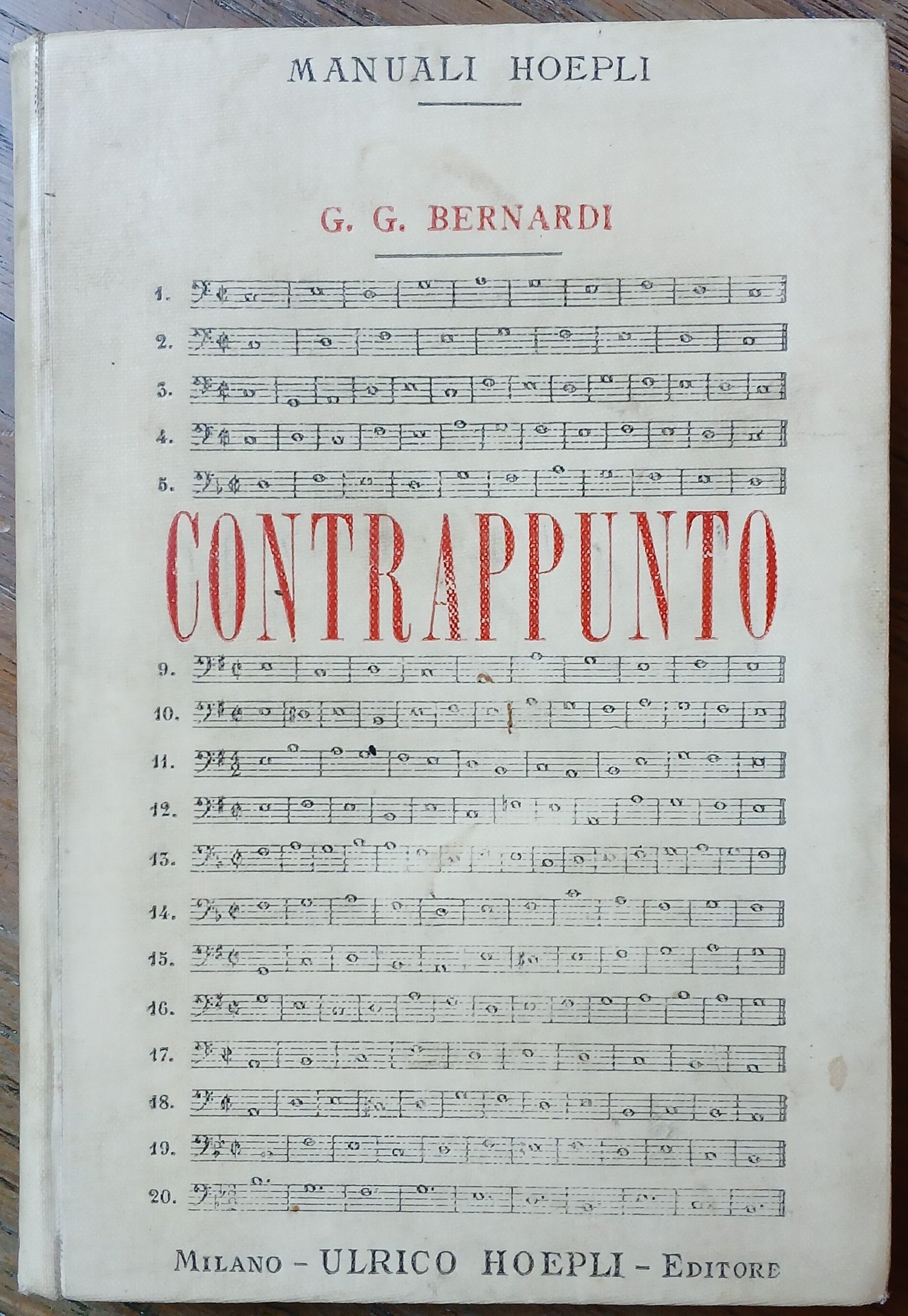 In 16°, legatura editoriale in piena tela, titoli in nero e rosso su fondo avorio, scritture musicali al piatto anteriore, tagli rossi, pp. XVI,238,(2) + pp. 64 di 'Elenco dei Manuali Hoepli'. Prima edizione. Circoscritte tracce di china al piatto posteriore, peraltro esemplare in ottimo stato di conservazione.