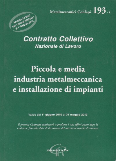Contratto Collettivo Nazionale di Lavoro - Piccola e media industria metalmeccanica e installazione di impianti- Metalmeccanici Confapi CCNL 193 i