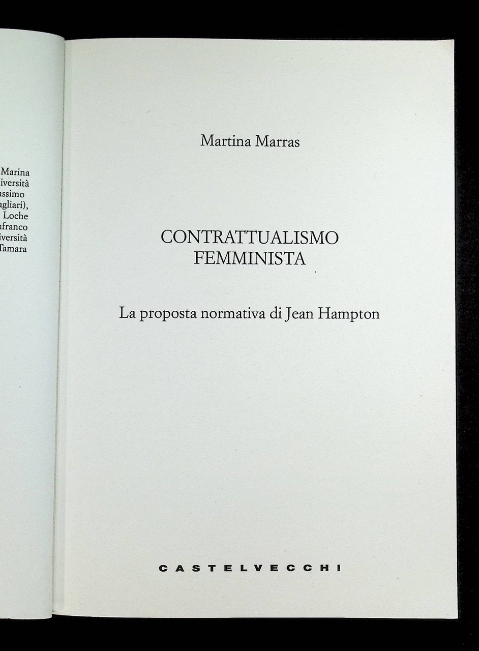 Contrattualismo Femminista Libro Martina Marras Hampton Castelvecchi 2022