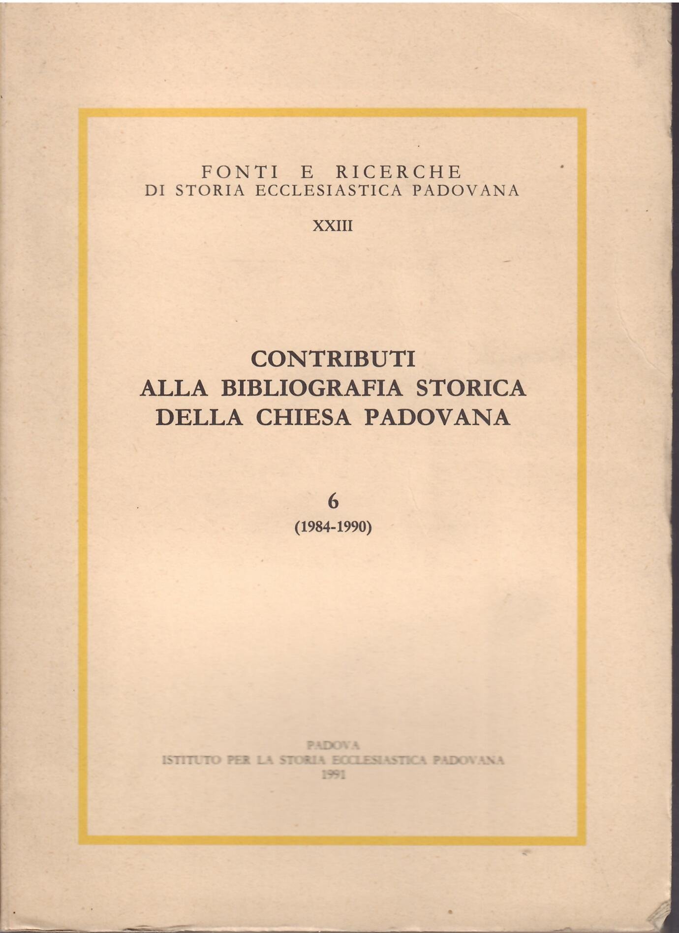 CONTRIBUTI ALLA BIBLIOGRAFIA STORICA DELLA CHIESA PADOVANA - 6 - ( 1984 - 1990 )