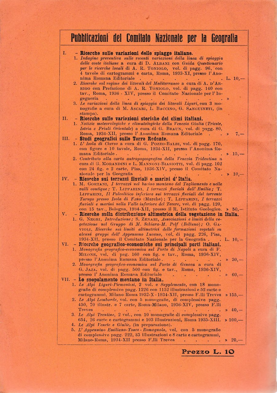 Copertina cartonata sporca lievemente. Tagli sporchi di polvere e ingialliti lievemente. Pagine ingiallite lievemente. Con due carte antropogeografiche alla scala di 1 : 100.000.