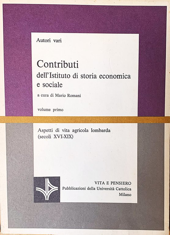 Contributi del'Istituto di storia economica e sociale. Volume primo. Aspetti di vita agricola lombarda (secoli XVI-XIX)