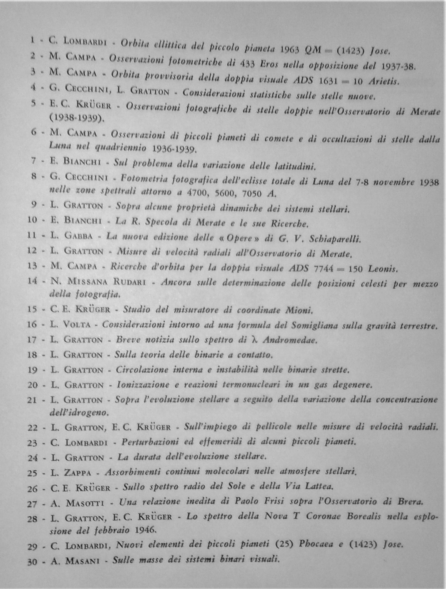 Contributi dell' Osservatorio Astronomico di Milano-Merate 1-30, 1938-1950. A cura del Direttore Prof. Emilio Bianchi, poi Luigi Volta, poi Francesco Zagar.