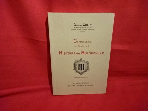 Bulgnéville, Chez l'auteur, 1987; in-8 (149 x 211 mm), 260 pp., broché. L'auteur est maire honoraire de Bulgnéville, conseiller général honoraire des Vosges. Sommaire : Préface de M. Albert Voilquin, sénateur des Vosges, conseiller général du canton de Bulgnéville ; 1re partie : histoire ; 2ème partie : parler local de jadis.