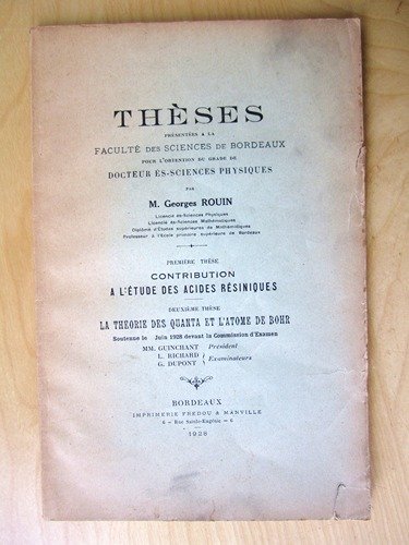 Contribution à l'étude des acides résiniques. Thèse présentées à la Faculté des Sciences de Bordeaux.
