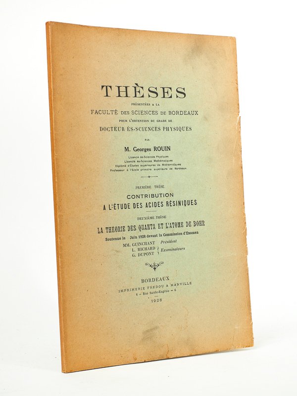1 vol. in-8 br., Imprimerie Fredou & Manville, Bordeaux, 1928, 110 pp. Etat très satisfaisant (petits accrocs et couv. frott.)