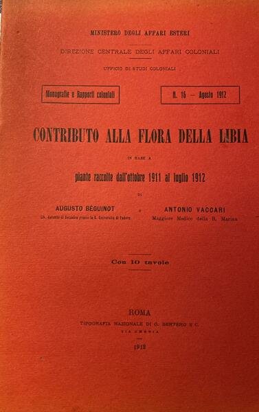 Contributo alla flora della Libia piante raccolte nell'ottobre 1911 al 1912 con 10 tavole.