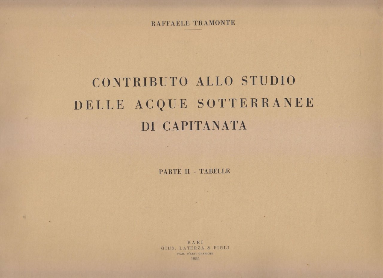 CONTRIBUTO ALLO STUDIO DELLE ACQUE SOTTERRANEE DI CAPITANATA 3 volumi Libro