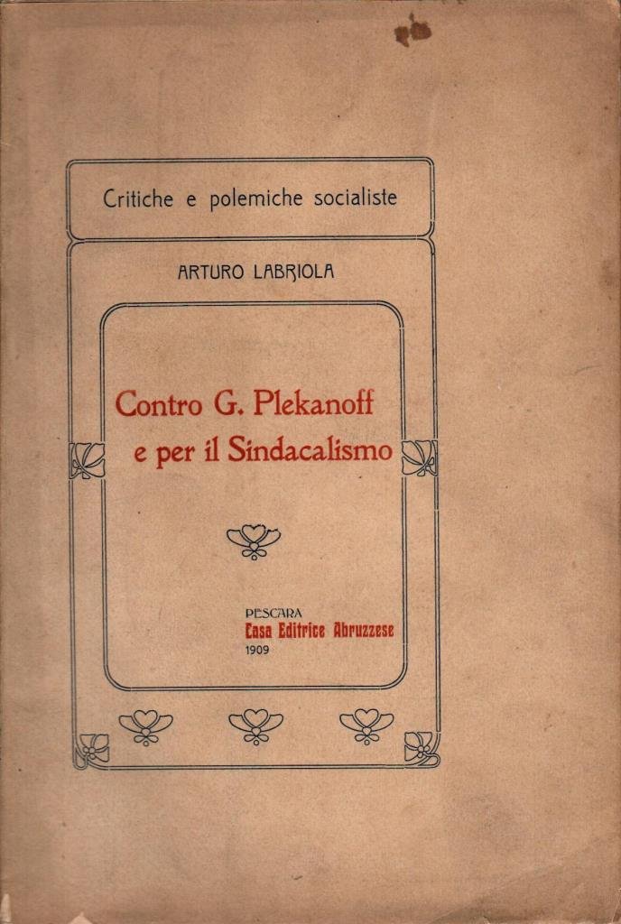 "Contro G. Plekanoff e per il Sindacalismo", edizione 1909, pp. 147, formato 15 x 23.