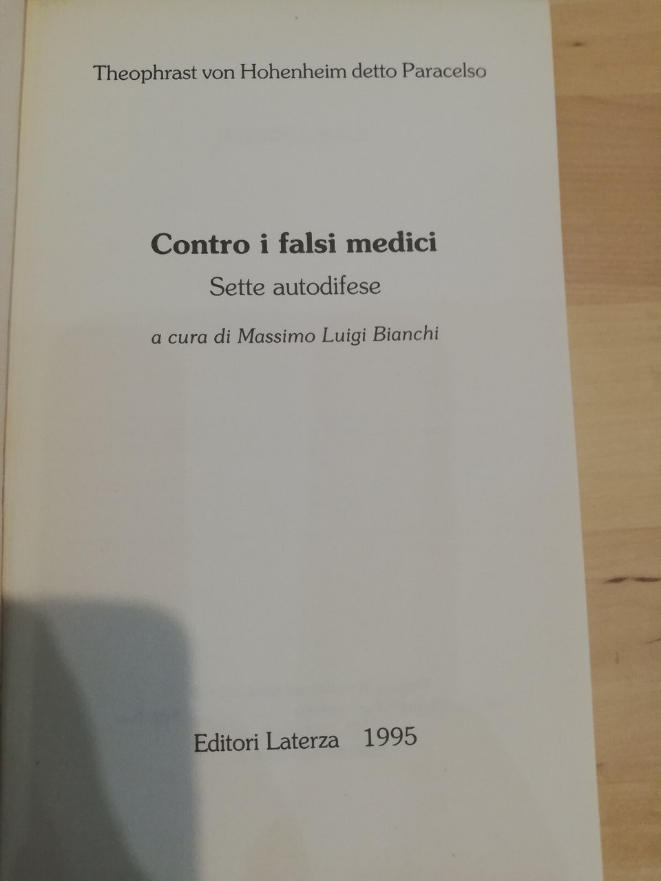 Contro i falsi medici. Sette autodifese, Paracelso, Laterza, 1995