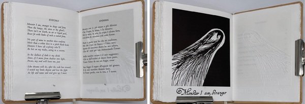 Introduzione di Gian Carlo Rossi e versione inglese “Against the Donning of the Gown” a cura di Giovanni F. Bignami. Scritta dal giovane Galileo nel 1589, a poco più di venticinque anni, nel breve periodo di docenza svolto nella città natale di Pisa, l’operetta poetica si compone di terzine rimate. Il testo rappresenta un tagliente anticonformismo contro l’obbligo di indossare la toga universitaria anche fuori dai luoghi accademici. Il giovane Galileo usa toni goliardici e doppi sensi anche pesanti, per criticare la volontà moralizzatrice del governo mediceo e, insieme, per castigare il compiacimento con cui i professori pisani sembravano seguire l’obbligo di sfoggiare l’ingombrante palandrana. All’interno 20 disegni originali di Donata Almici e un rilievo a secco. Lingua italiano e inglese. Formato 13x18 cm. Numero pagine 92. Carta Alcantara gr. 130. Composizione in caratteri mobili monotype. Stampa a torchio pianocilindrico. Legatura in piena pelle. Tiratura in 2.000 esemplari. Condizione ottima.